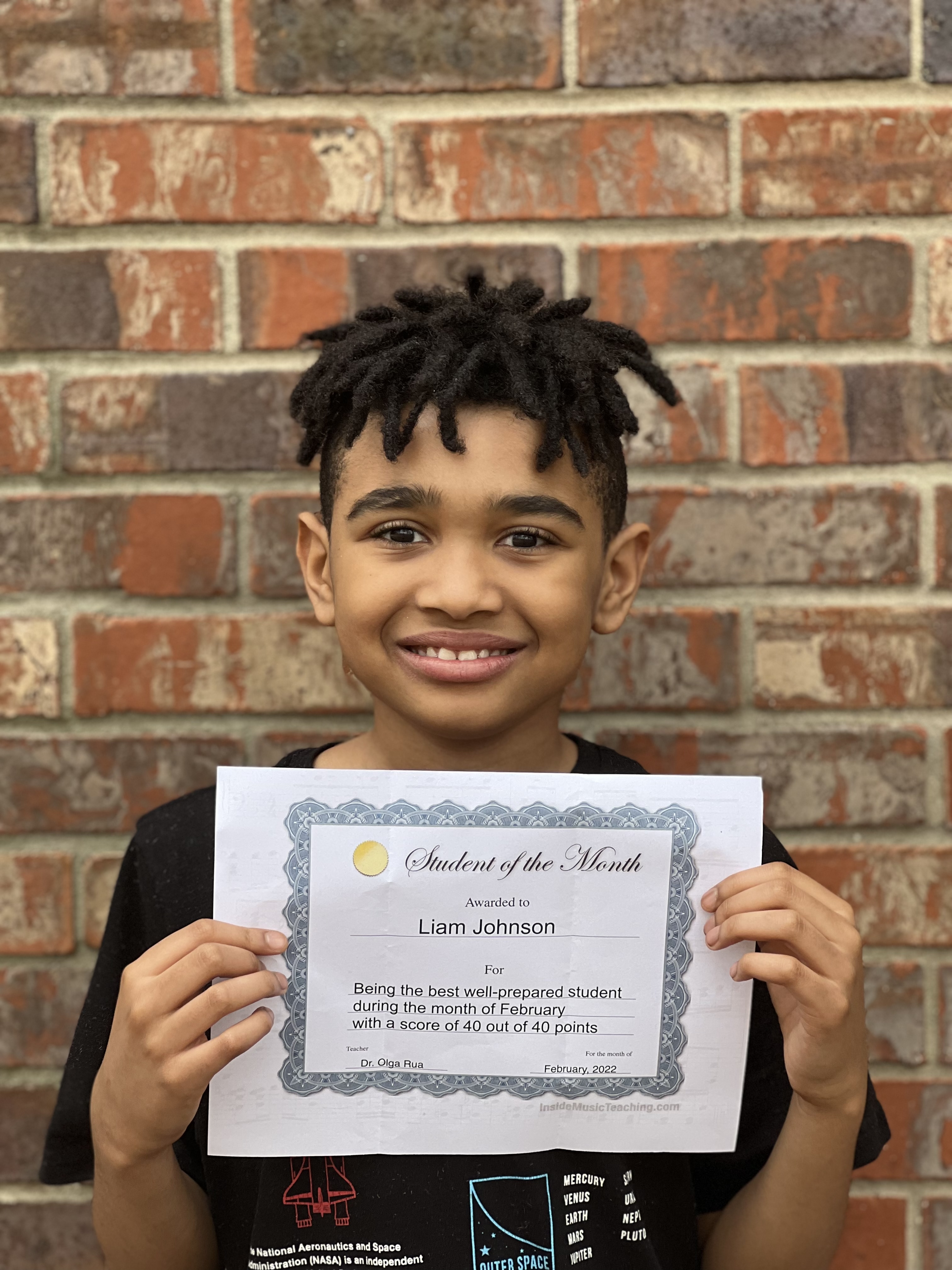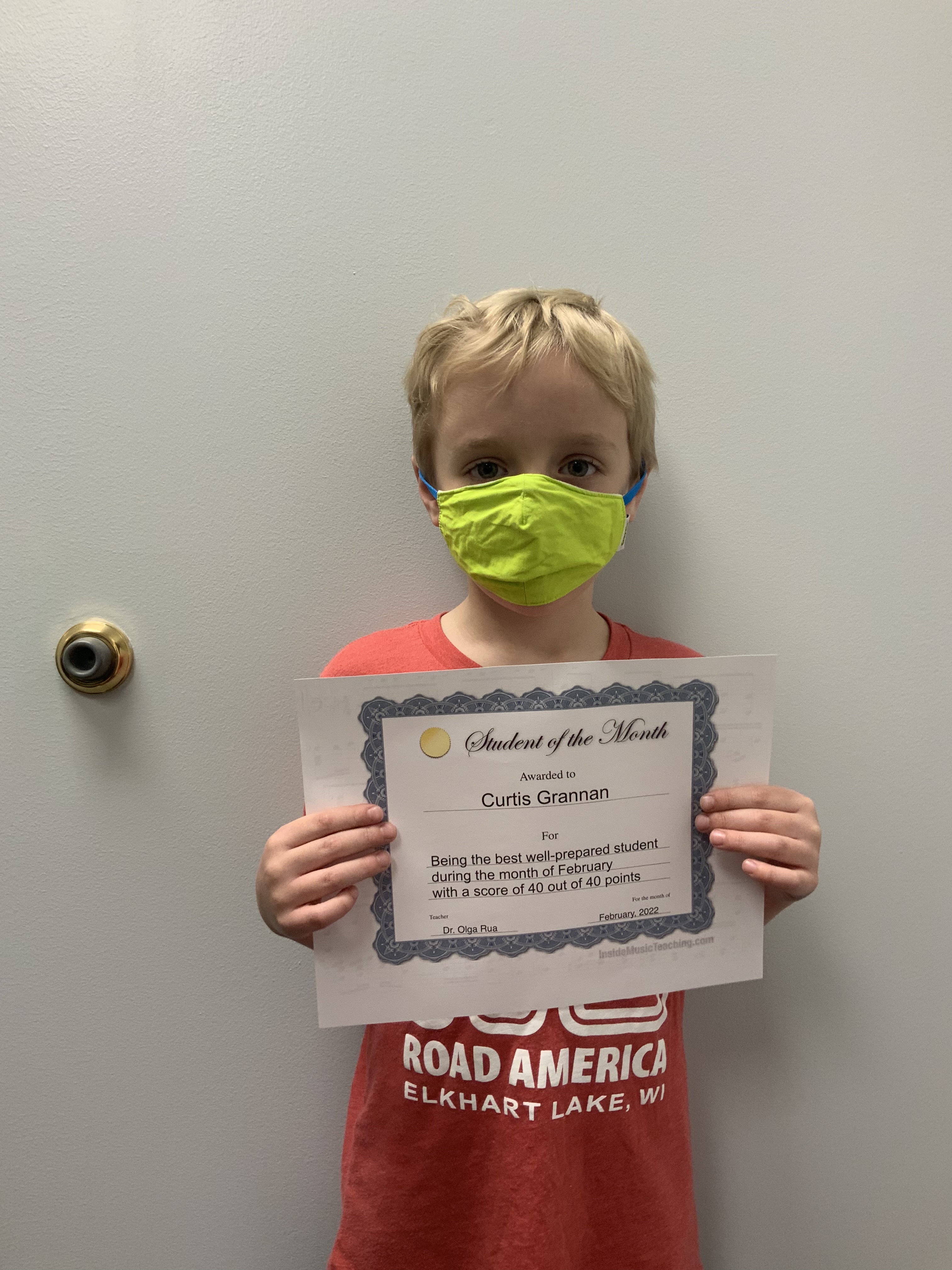 For the month of February 2022, two students get the title of ”Student of the Month,” they were the most well-prepared for their lessons of February with a score of 40 points out of 40. They are: Curtis Grannan and Liam Johnson.
