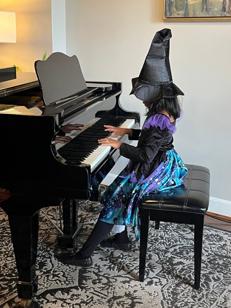 It was so much fun to hear each student play on their Halloween Costume. The participants were: Amelia Hossain, Brody Santiago, Gabriela Santiago, Vivian Grannan, Curtis Grannan, Akshara Baskar, Daphne Steele, Michael Wagner, Akanksha Pallanti and Anuhya Pallanti.