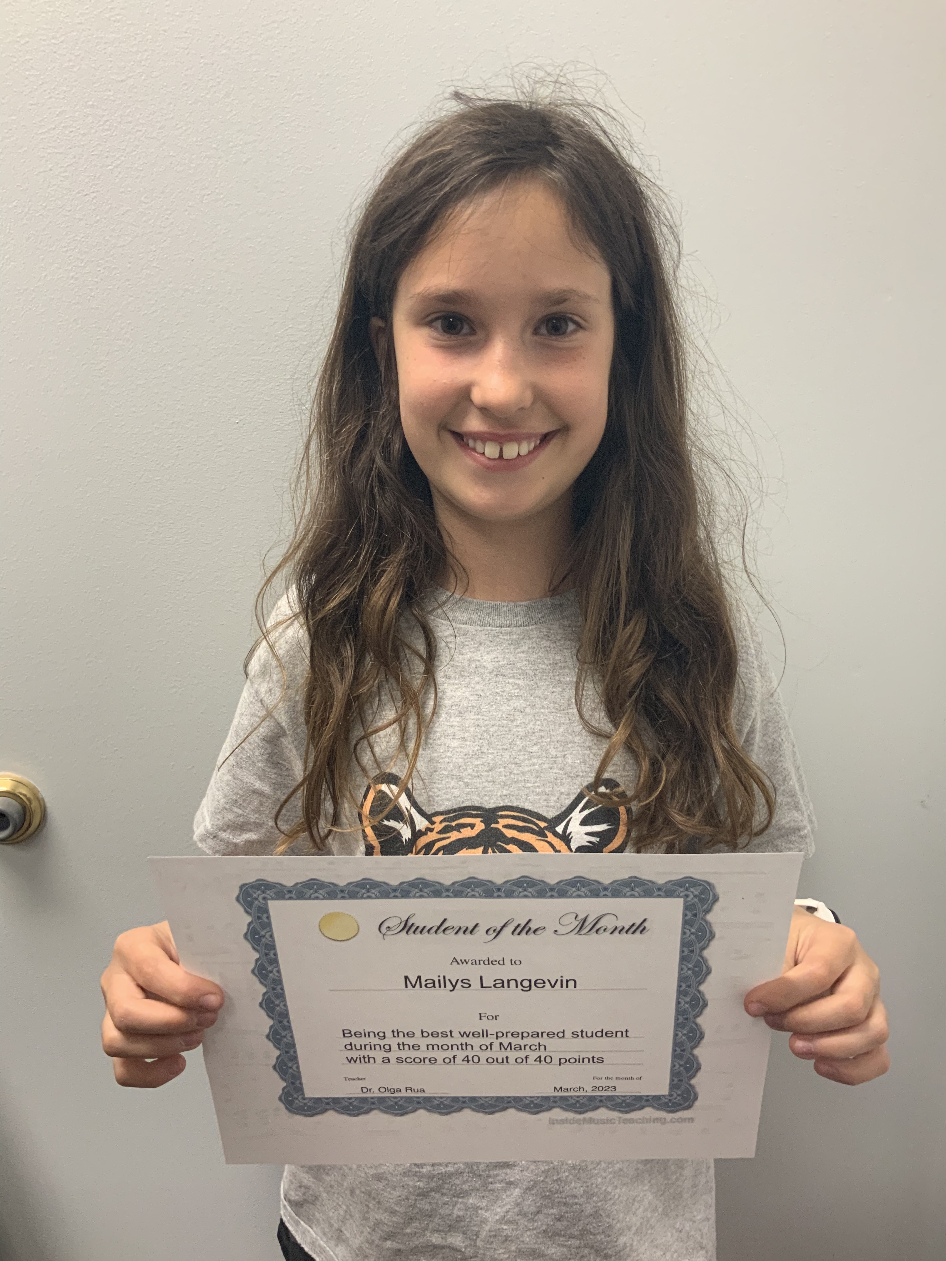 For the month of March 2023 two students get the award of “Students of the Month,” they are: Curtis Grannan and Mailys Langevin.