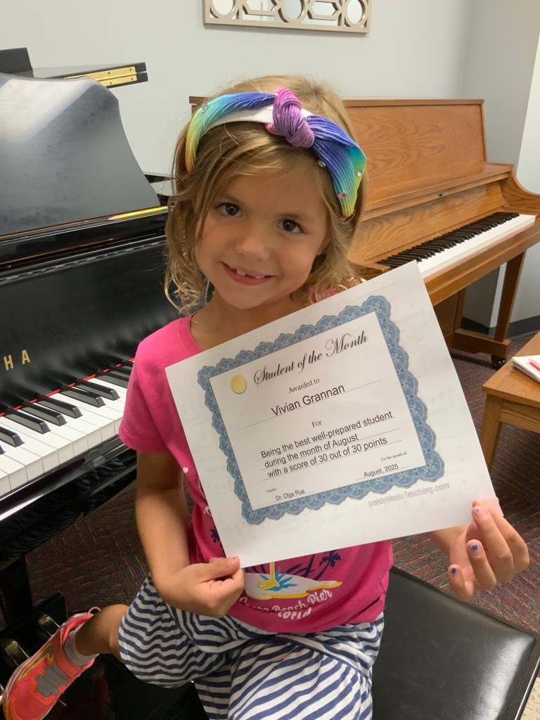 As the piano studio’s year ends, let us honor the students who achieve a milestone and who were best prepared for each lesson during the school year September 2024 to August 2025.