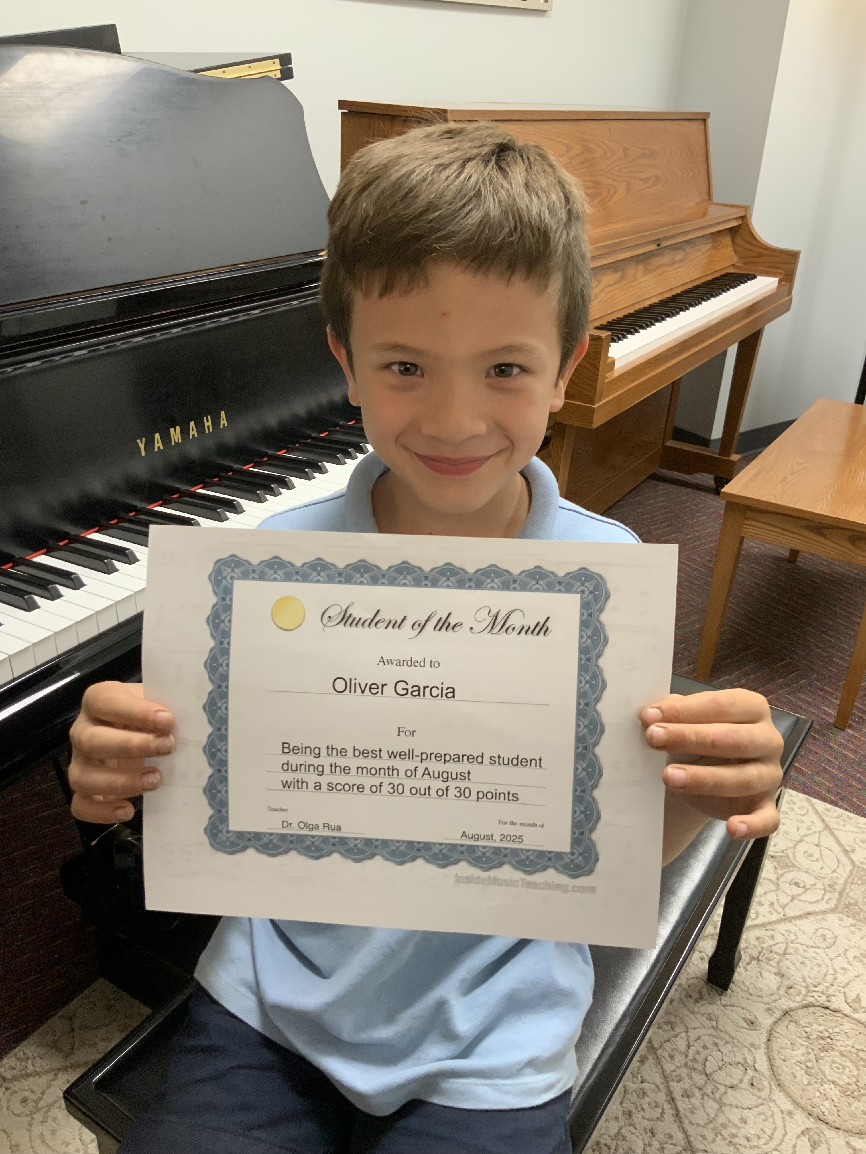 Each students earns preparation points for each lesson. The student with more points each month becomes “Student of the Month;” the student with this honor for more months during the school year becomes “Student of the Year:”