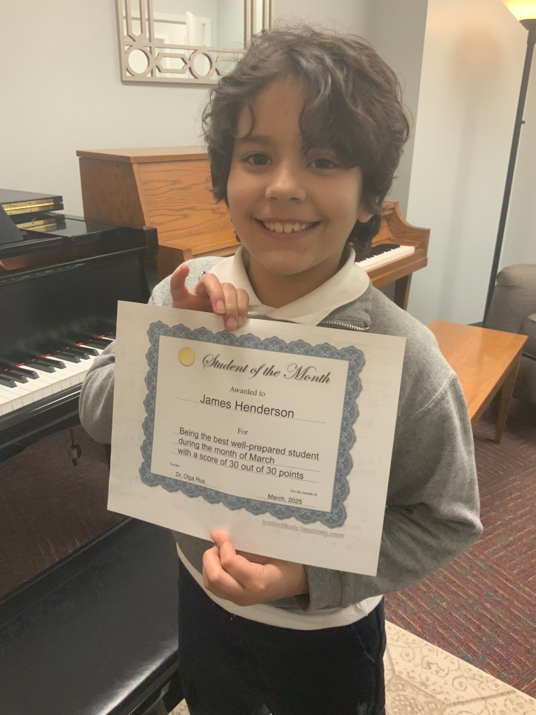 For the month of April 2025, the “Student of the Month” is Marcel Monnin. He receives this award for preparing each lesson so well. He got 50 points out of 50! This is the third time he receives this award during this school year.