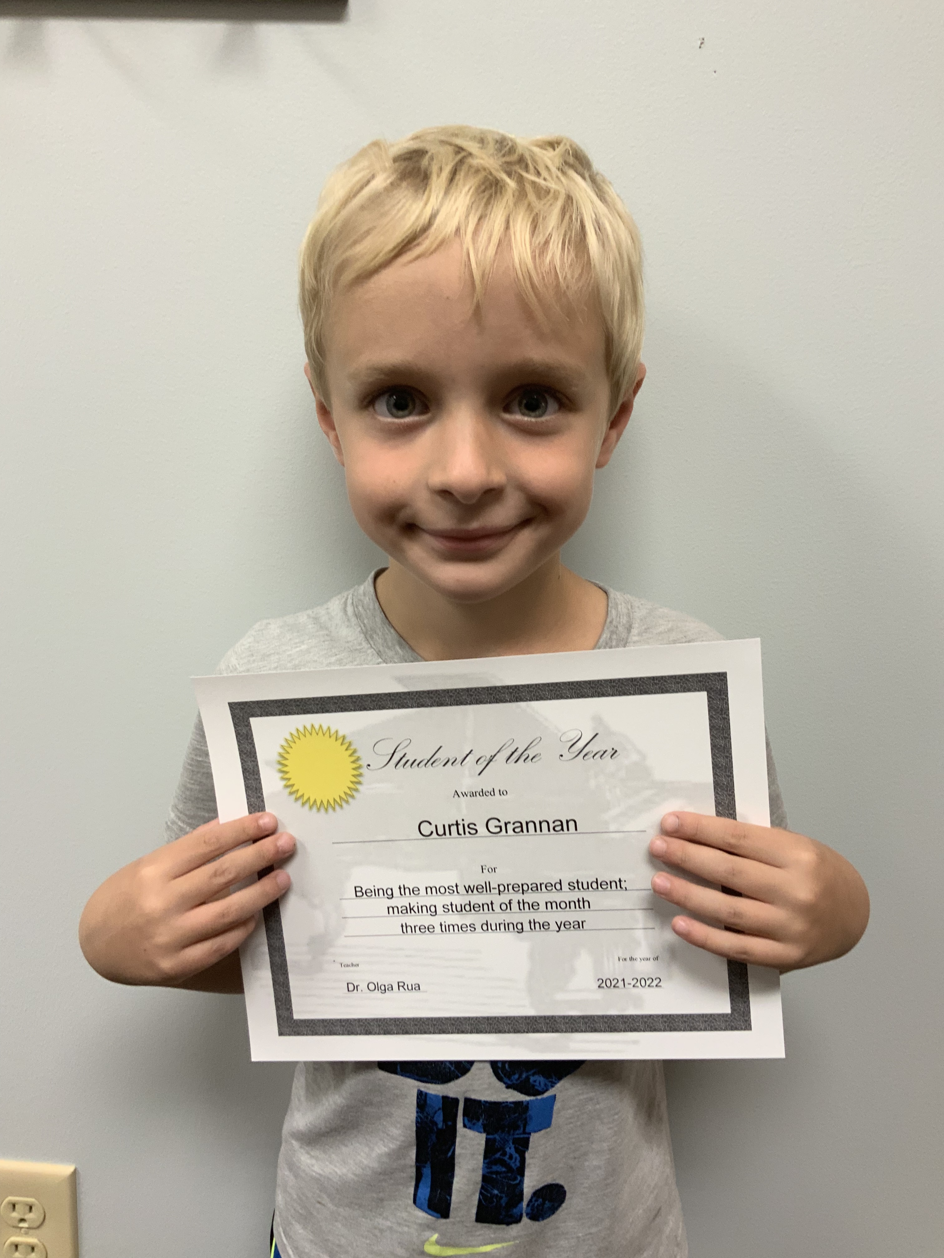 Each students earns preparation points for each lesson. The student with more points each month becomes “Student of the Month”; the student with this honor for more months during the school year becomes “Student of the Year:”